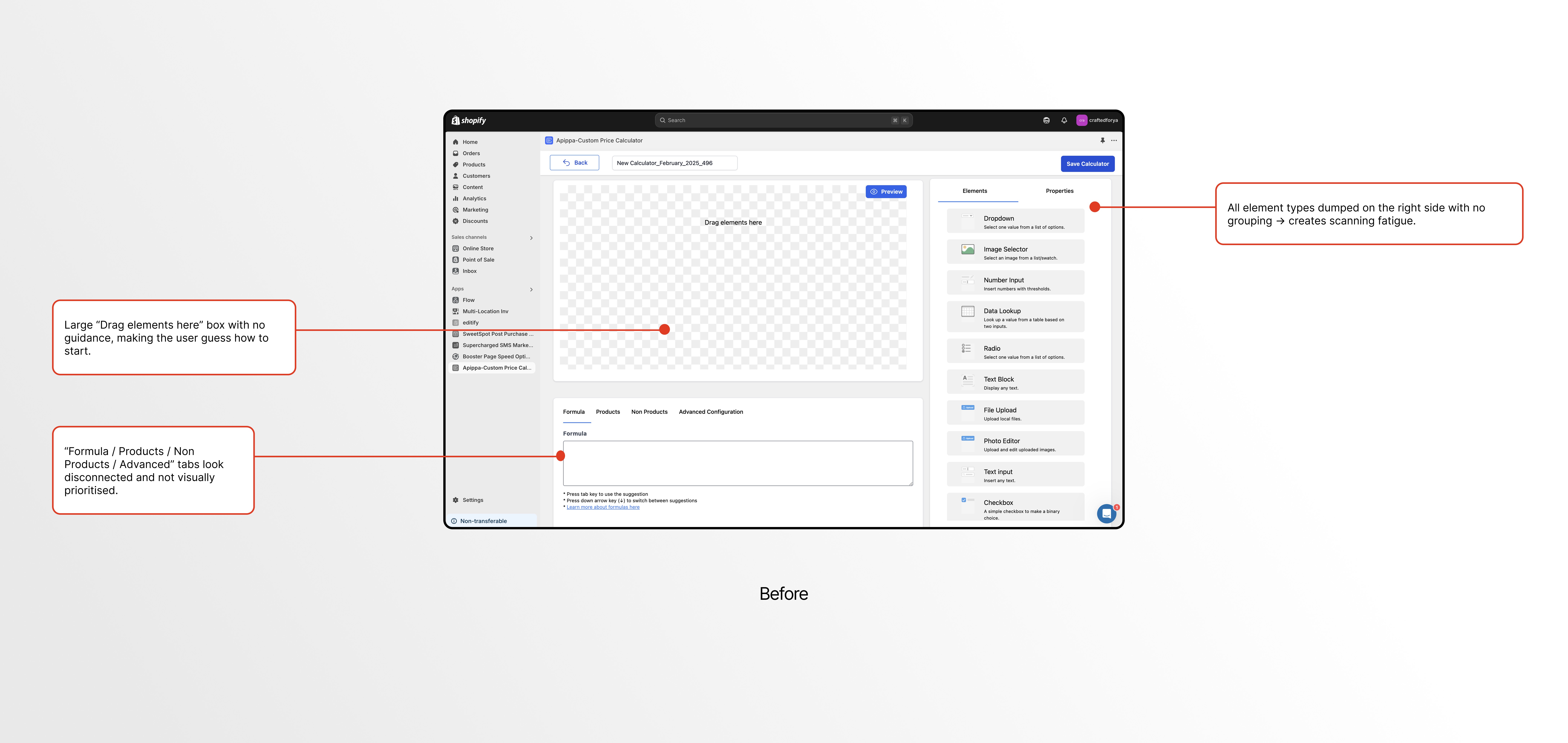 This project started with a calculator tool that technically worked but wasn’t easy to operate. The first step was to understand why users struggled the moment they entered the dashboard.